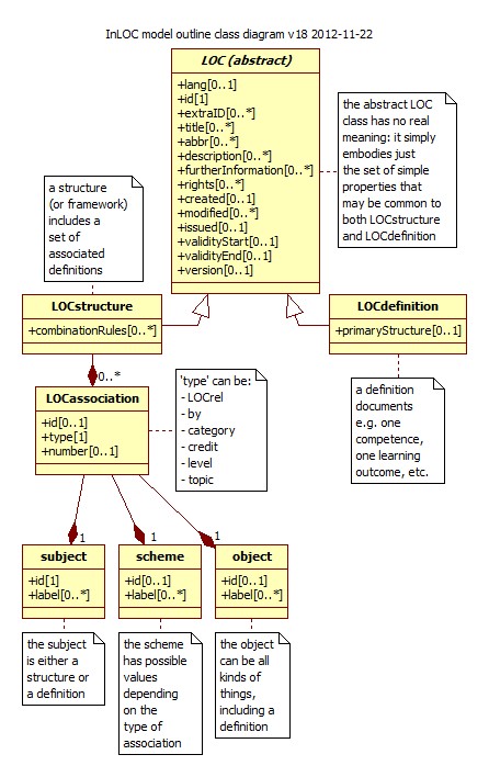The classes LOCdefinition and LOCstructure are both subclasses of the abstract LOC class, because the kinds of property directly relevant to each are very similar. Values of these properties may be quite different between a related LOCdefinition and LOCstructure.