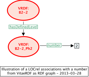 <LOCassociation type="IM.html#LOCrel"> <subject id="http://www.vitae.ac.uk/researchers/uri/B2-2"></subject> <scheme id="http://purl.org/net/inloc/hasDefinedLevel"></scheme> <object id="http://www.vitae.ac.uk/researchers/uri/B2-2_Ph3"></object> <number>2</number> </LOCassociation>