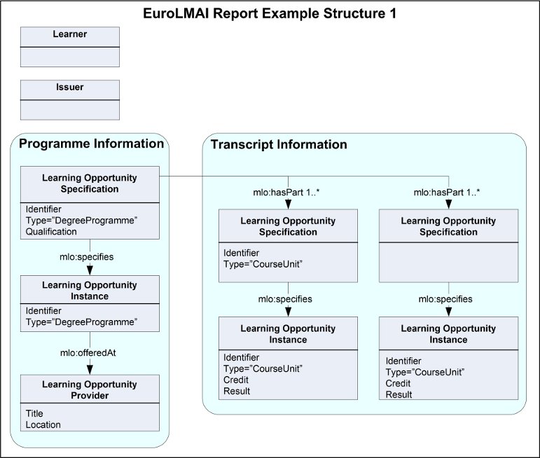 Figure 4 provides an example structure of a EuroLMAI report for a learner that has completed two course units, both at the institution offering the programme the learner has enrolled in.