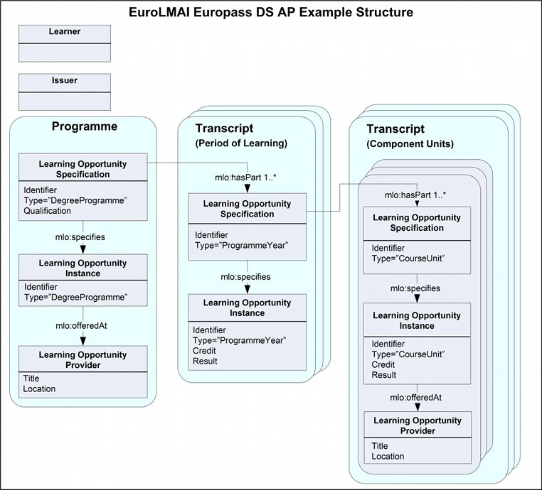 USE CASE NO. 3: Within the context of the EHEA, Higher Education Institutions need to issue Achievement Reports on qualifications adhering to the Europass Diploma Supplement Information structure. The Europass DS is fully supported by the EuroLMAI through a concrete AP of the generic model, which defines specific refinements and constraints, as these are imposed by the DS information recording requirements (CEN WSLT ELM PT, 2009b). The DS is issued for describing a qualification obtained by a specific learner upon successful completion of a programme of study.