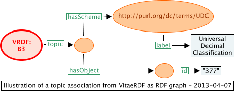 VRDF:B3 inloc:topic :_blank40 . _:blank40 hasScheme <http://purl.org/dc/terms/UDC> . <http://purl.org/dc/terms/UDC> inloc:label "Universal Decimal Classification" . _:blank40 hasObject _:blank41 . _:blank41 inloc:id "377" .