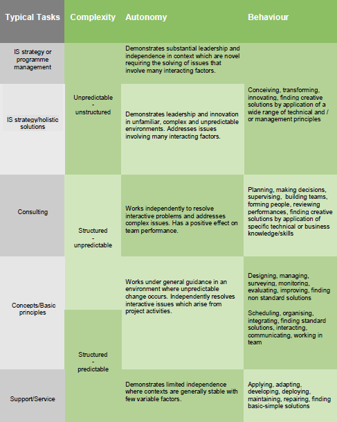 - The French Cigref maintain a reference point for job competences for IT professionals "Information Systems roles in large companies".