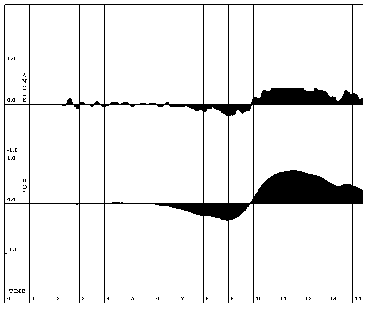 Figure 4.1: Handlebar angle and SUV roll against time for the initial